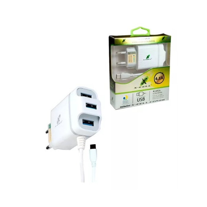 KIT CABO E CARREGADOR CEL/DADOS C/ 3 ENTRADAS USB C/ CABO P/ TYPE-C UR23 X-CELL