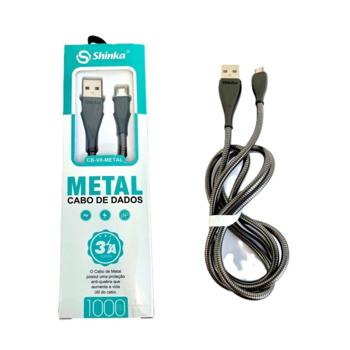 Cabo de Dados USB AM para Micro USB (V8) 1 Metro 3A - Shinka Metal PretoConecte seus dispositivos com segurança, eficiência e estilo com o Cabo USB AM..